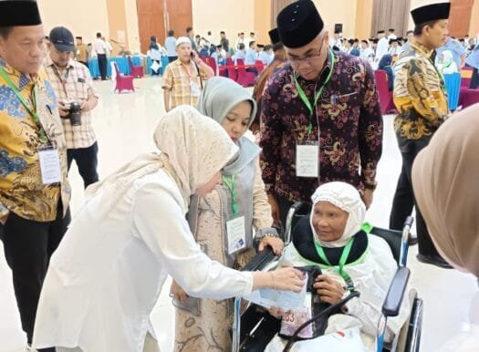 Desir.id | Bank BRI Medan Putri Hijau menyerahkan secara langsung living cost Jemaah Haji tahun 2025 kepada para calon jemaah haji (Calhaj) di Asrama Haji Embarkasi Medan untuk jadwal keberangkatan 1 – 31 Mei 2025.