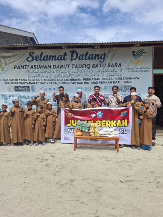 Setelah memastikan situasi lalu lintas terkendali, petugas melanjutkan kegiatan sosial dengan membagikan sembako kepada warga di Desa Sumber Padi. Aksi ini menjadi bagian dari program Jum’at Berkah yang rutin dilaksanakan jajaran Polres Batu Bara.
